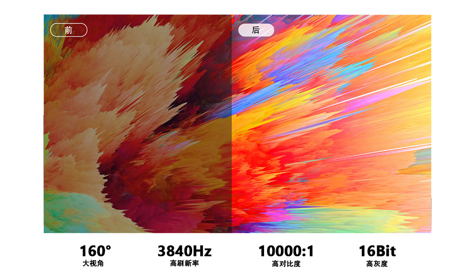 | 高刷超清 搭载3840Hz超高刷新率与16bit高灰度,画面动态无拖影、无扫描线,细节真实细腻。 |