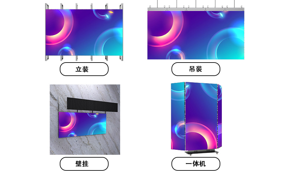 | 多样化安装 支持吊装、立装、壁挂、一体机等多种安装方式,适应不同场景需求。 |