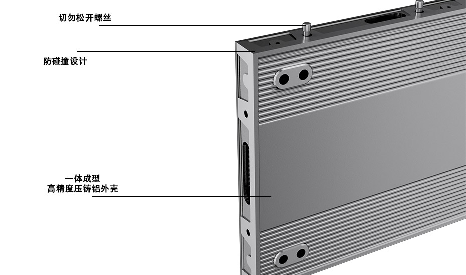 ![]() | 精工平整 采用高精度压铸铝一体化箱体,确保大面积拼接平整无缝,安装快速稳定。 |