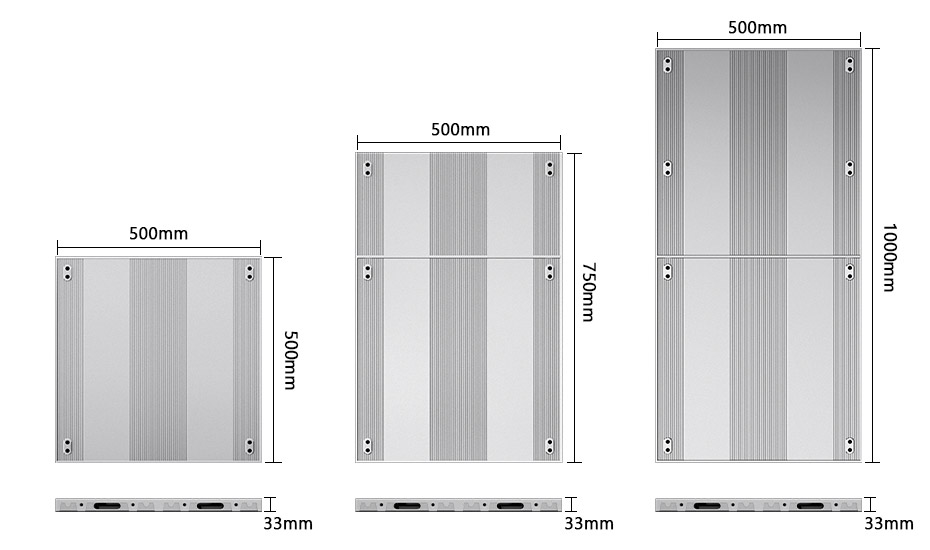 | 箱体尺寸(毫米) | 500x250x33/750x250x33/1000x250x33/500x500x33/750x500x33/1000x500x33 | ||||||